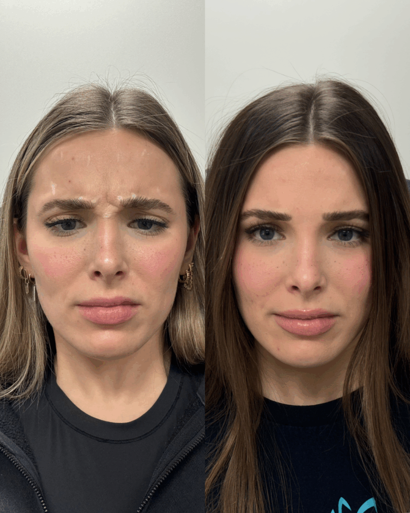 For the frown lines area, your specialist will administer 5 injections into muscles in your forehead—1 in the procerus muscle and 4 in the corrugator muscles.
